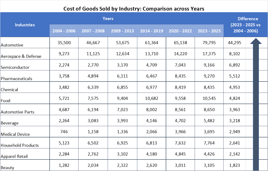 Table 2. Analysis of the Rising Cost of Goods for Manufacturing Industries