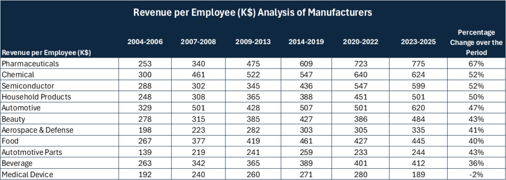 Table 1. Revenue/Employee of Manufacturing Companies