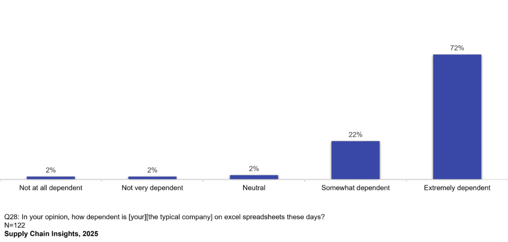 Instead, I find it useful to examine why companies use spreadsheets. If your organization has a supply chain planning solution yet remains extremely dependent on spreadsheets, press for an explanation of why. List the use cases. Understand the reasons.